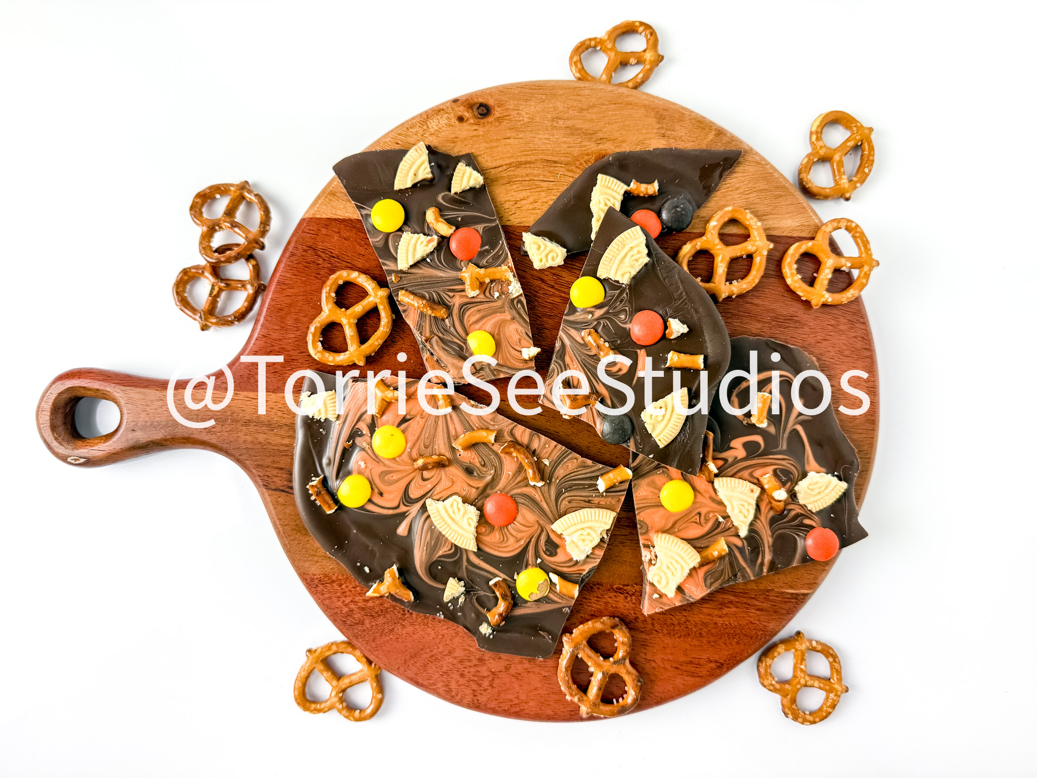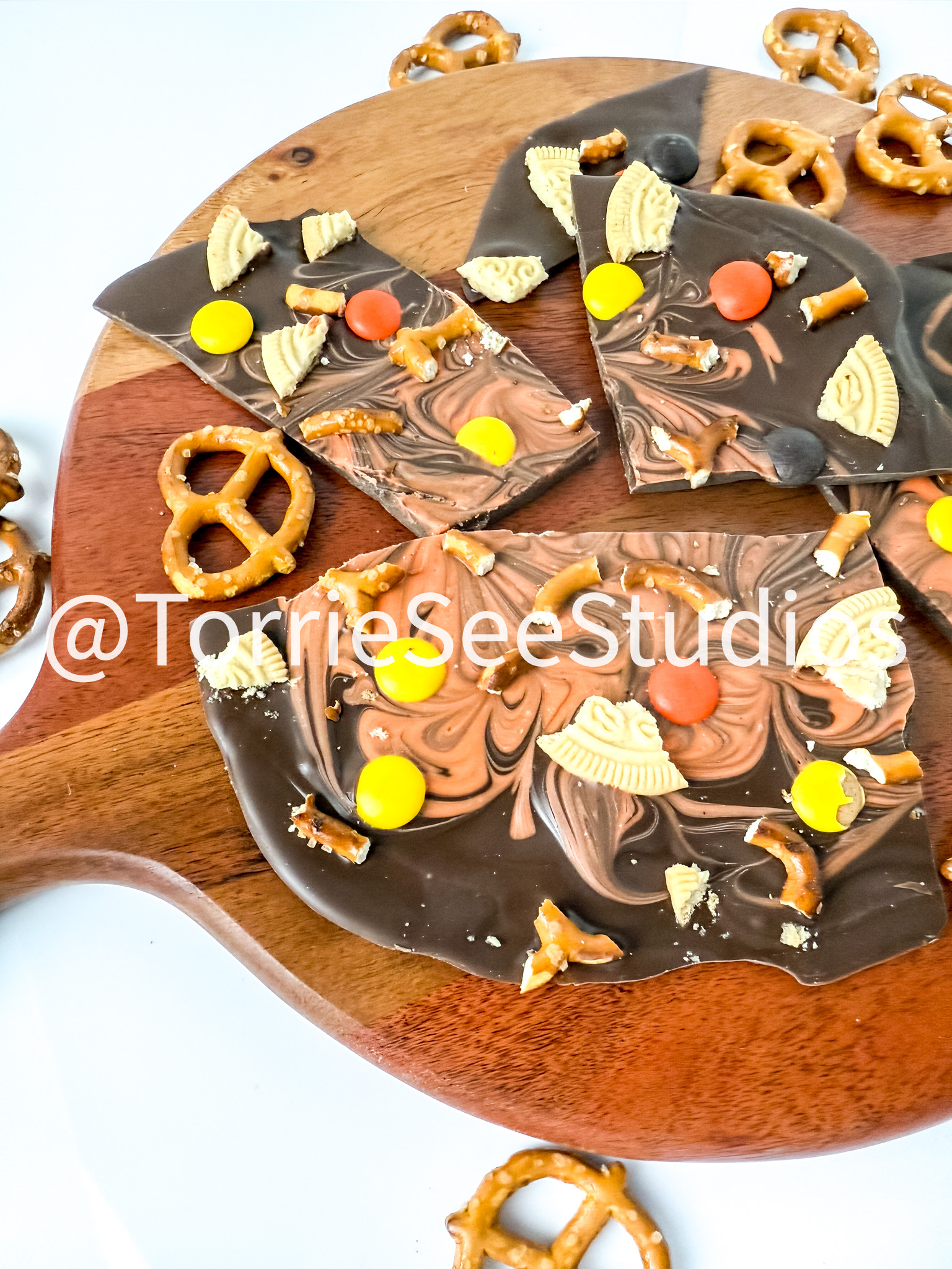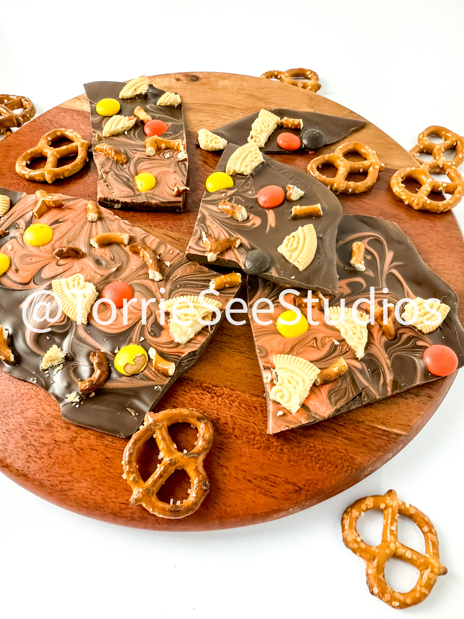 This Autumn Bark is full of fall fun. This bark contains candy coated peanut butter pieces, pretzels and more. It’s a tasty way to bring in the season
