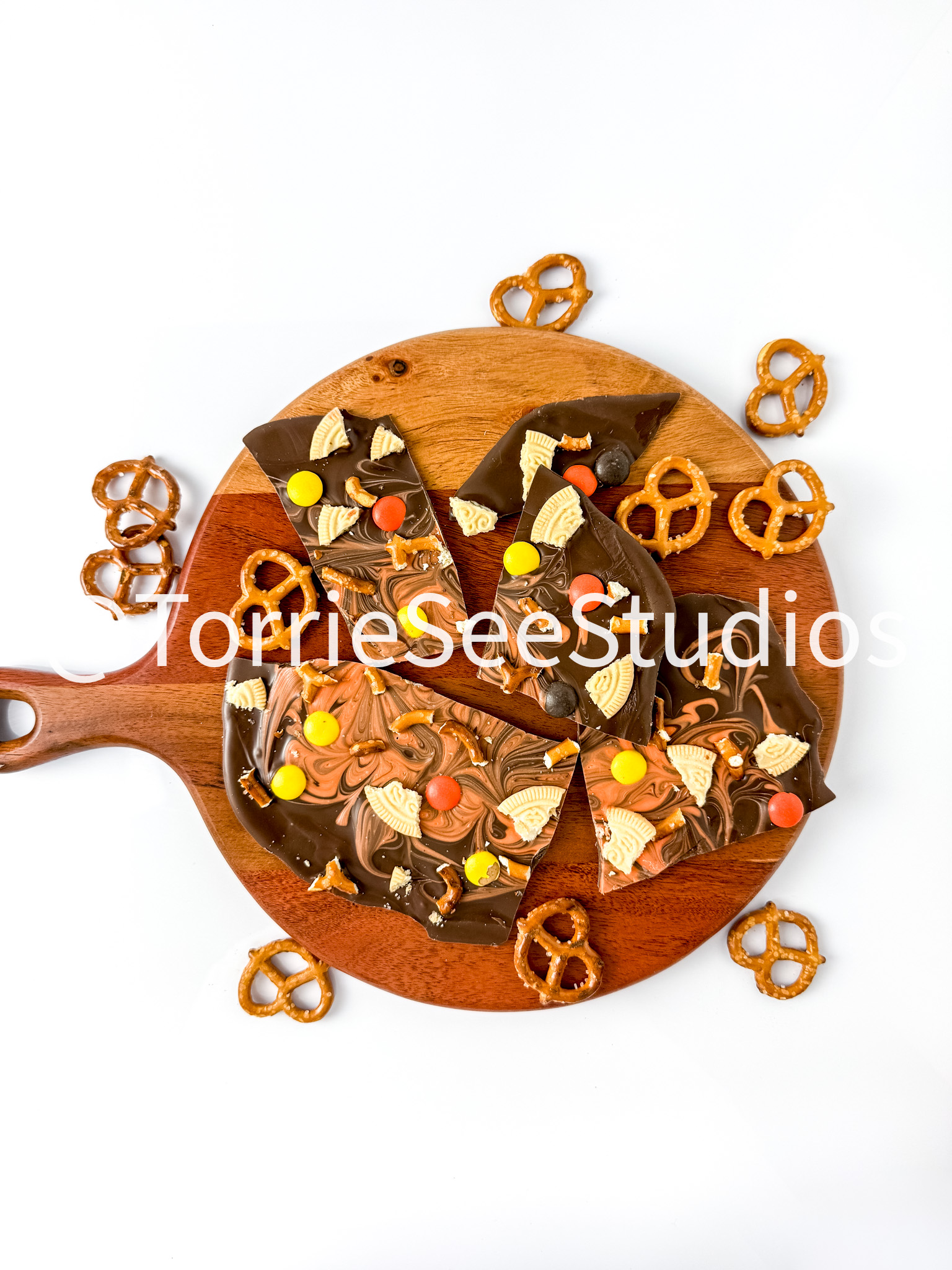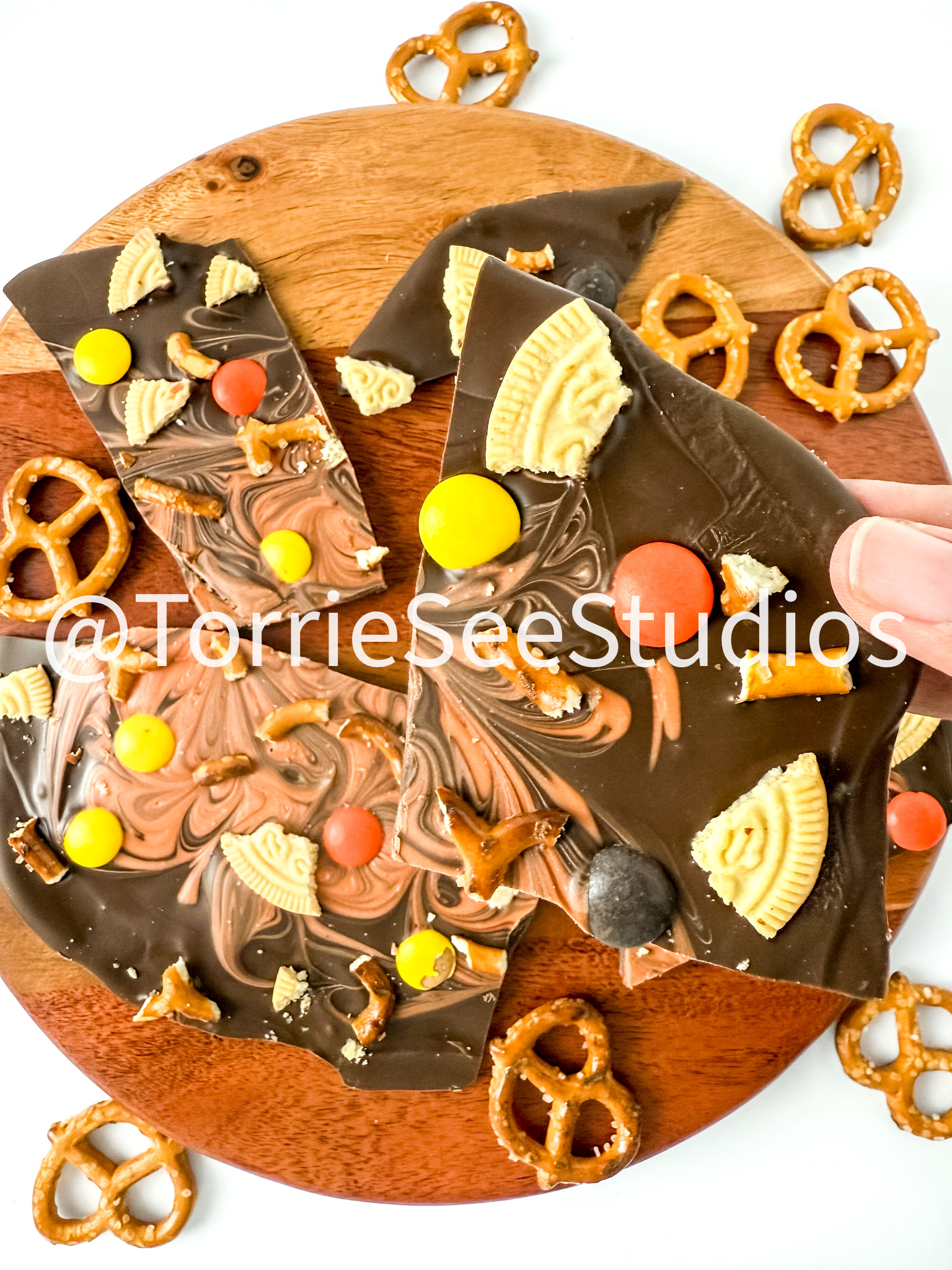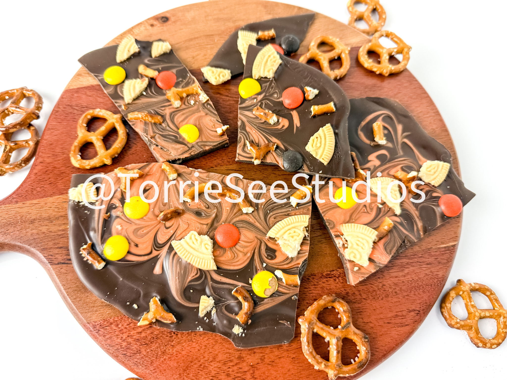 This Autumn Bark is full of fall fun. This bark contains candy coated peanut butter pieces, pretzels and more. It’s a tasty way to bring in the season