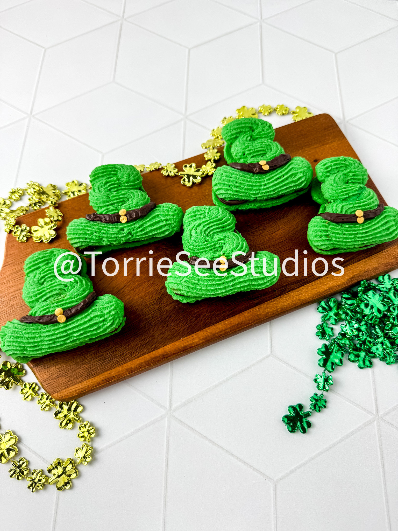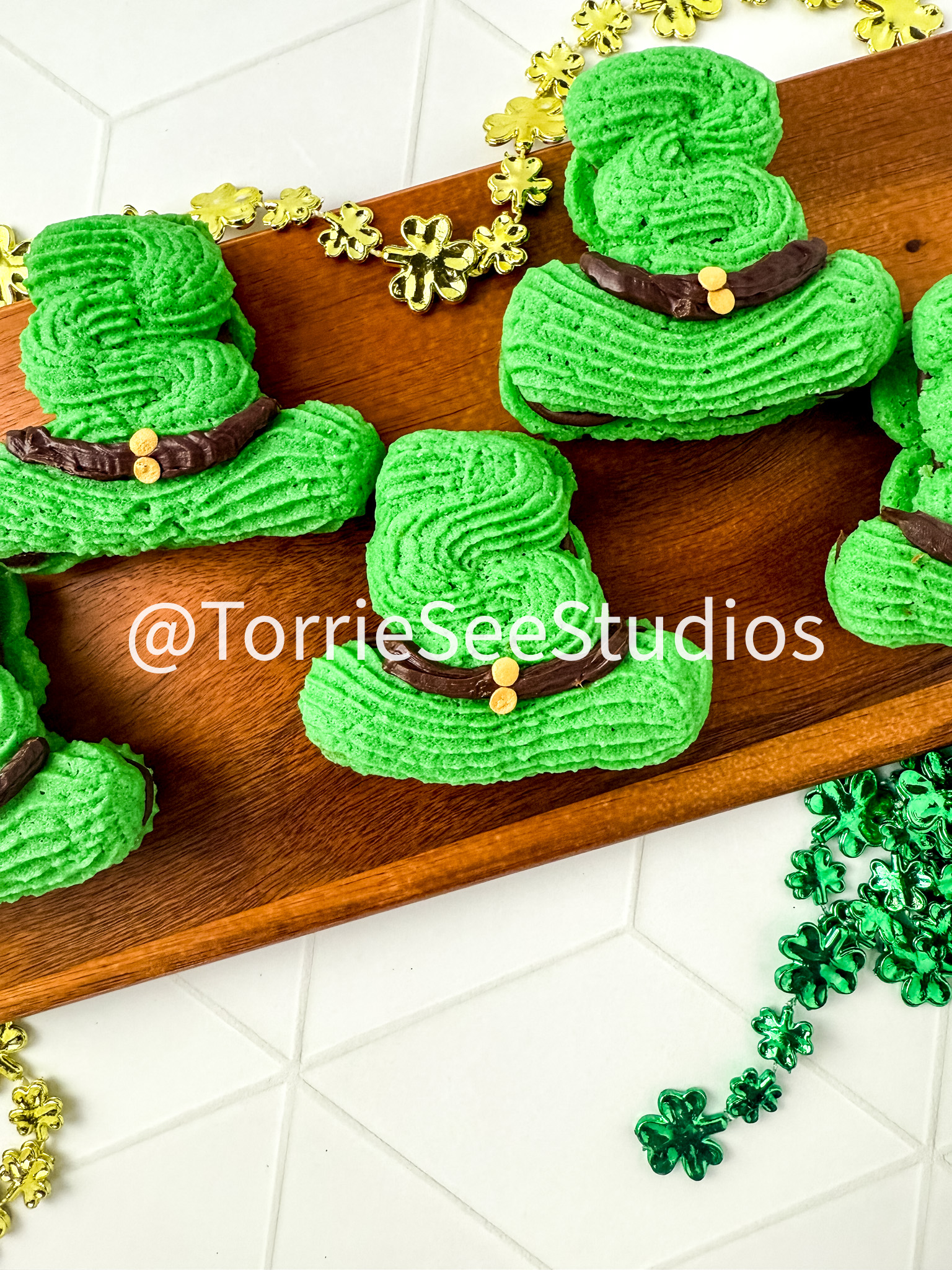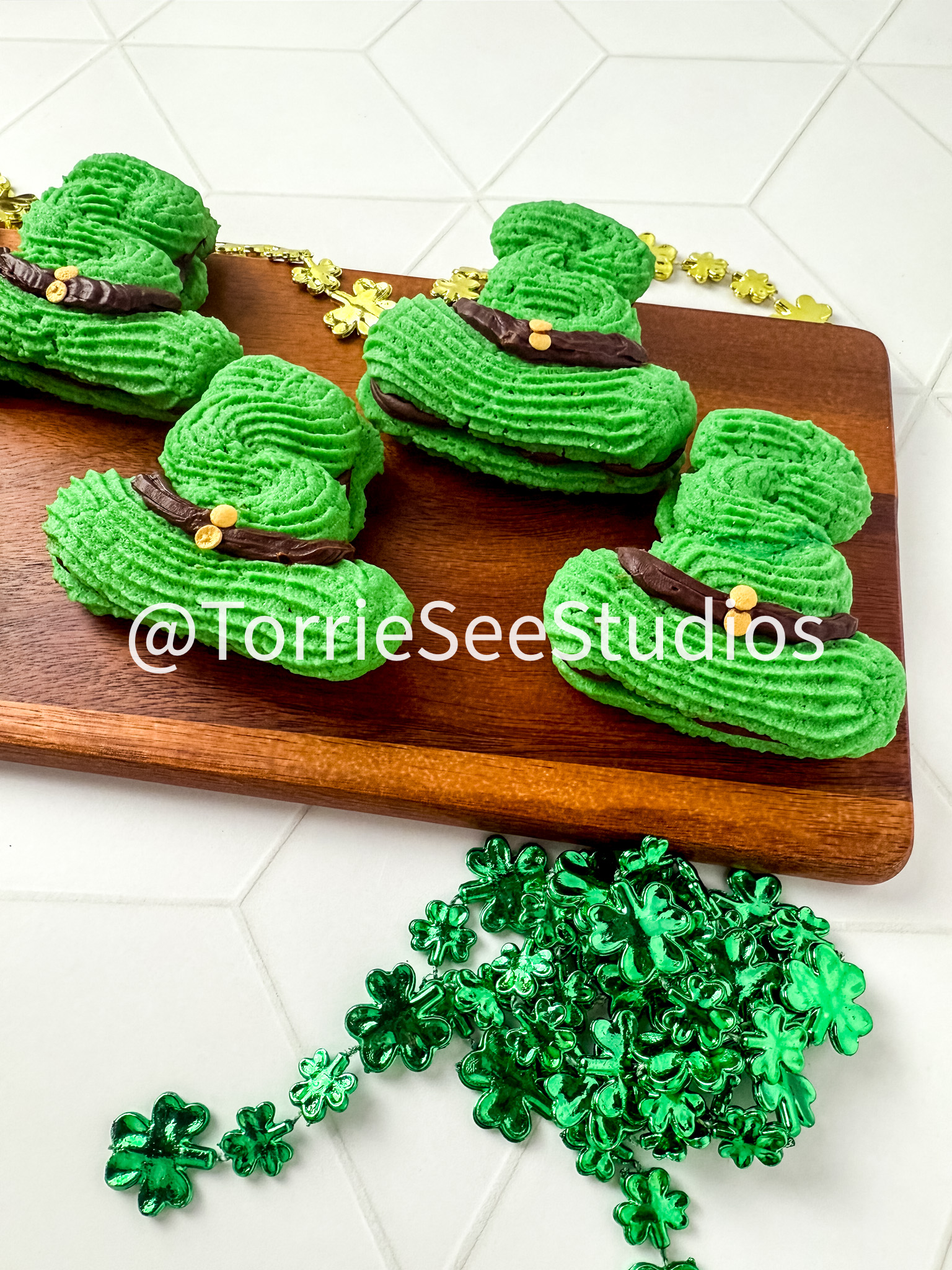 Irish Cream Leprechaun Cookie Sandwiches on Rhombus Tile