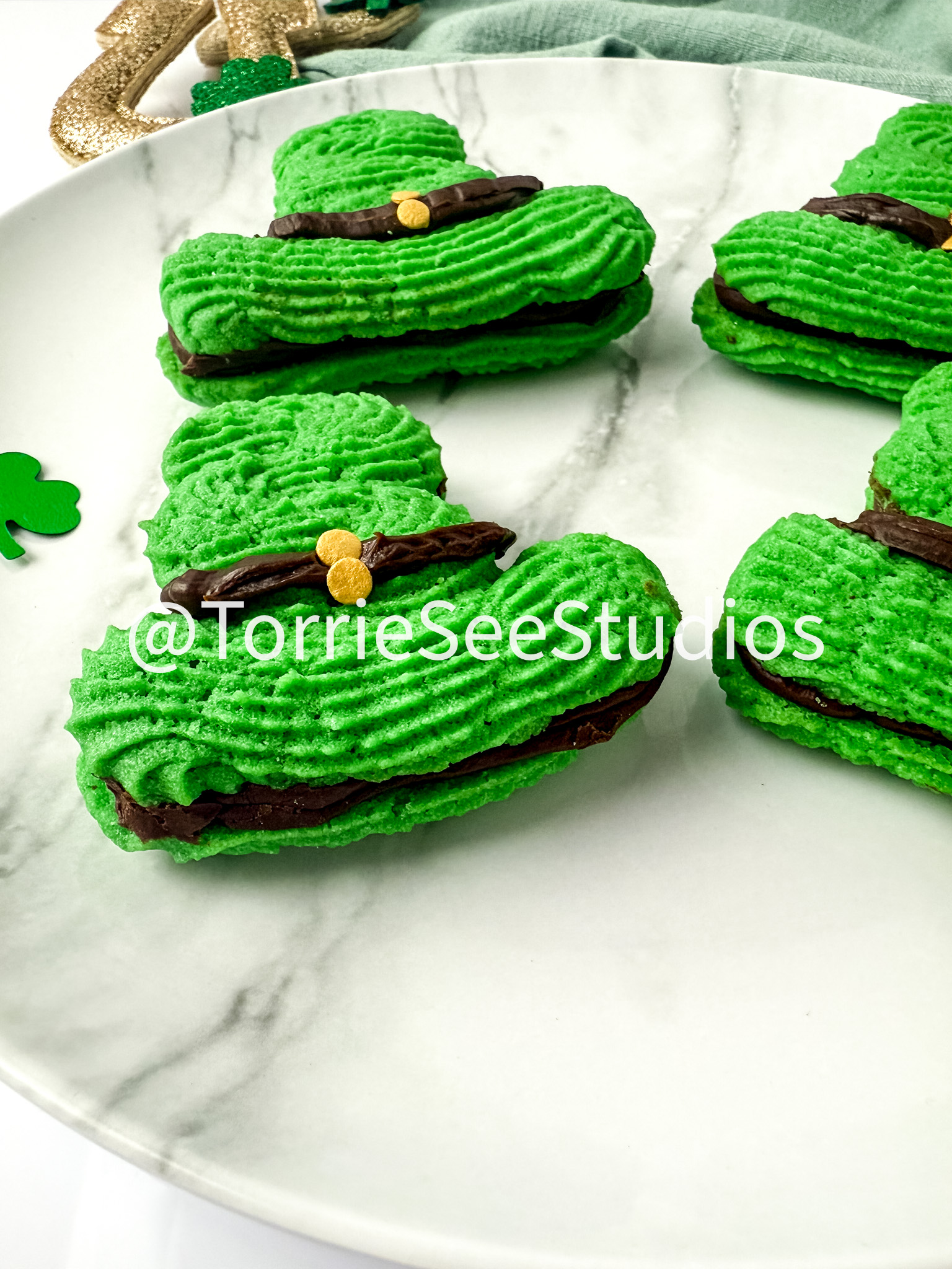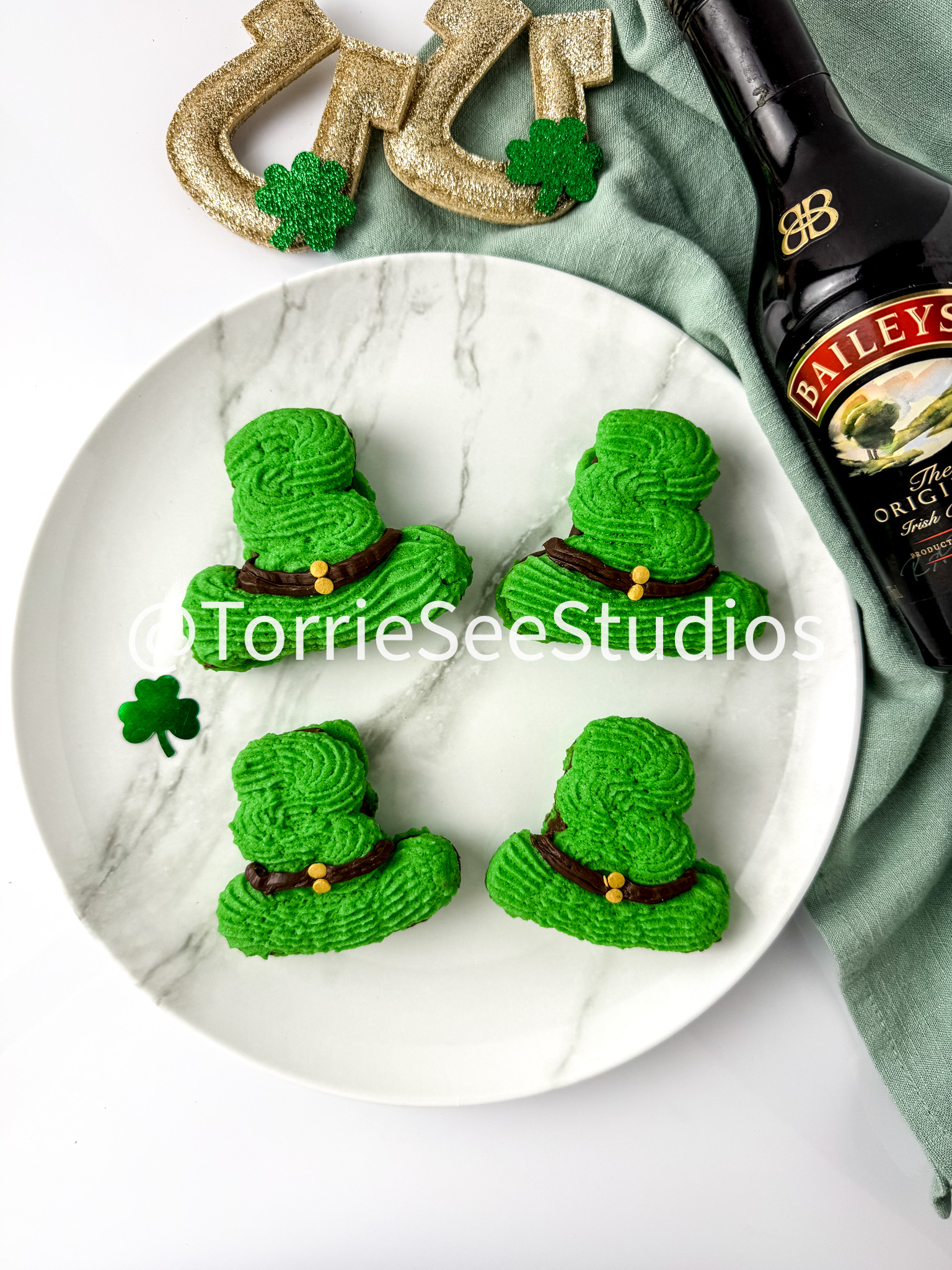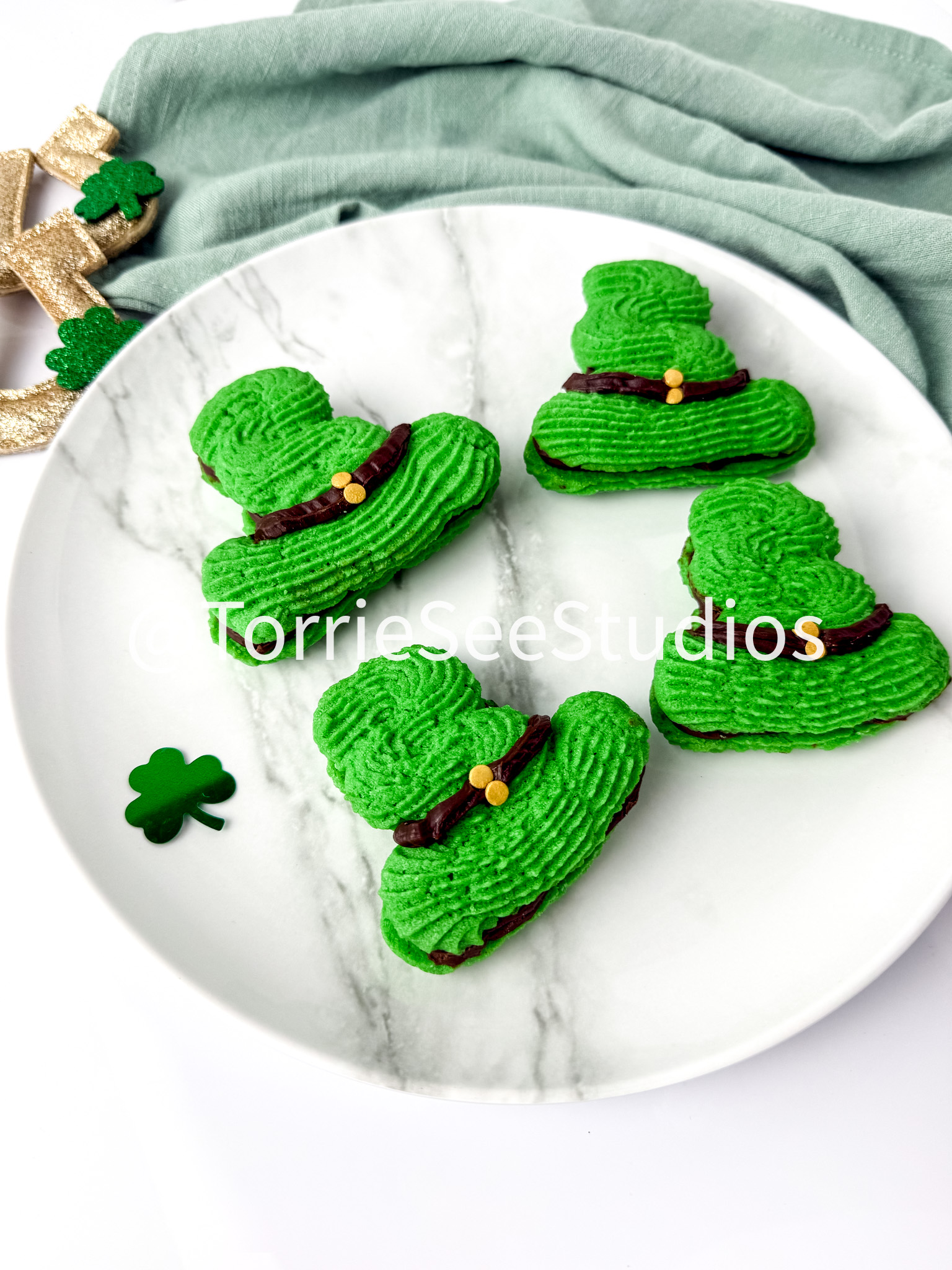 Irish Cream Leprechaun Cookie Sandwiches on White