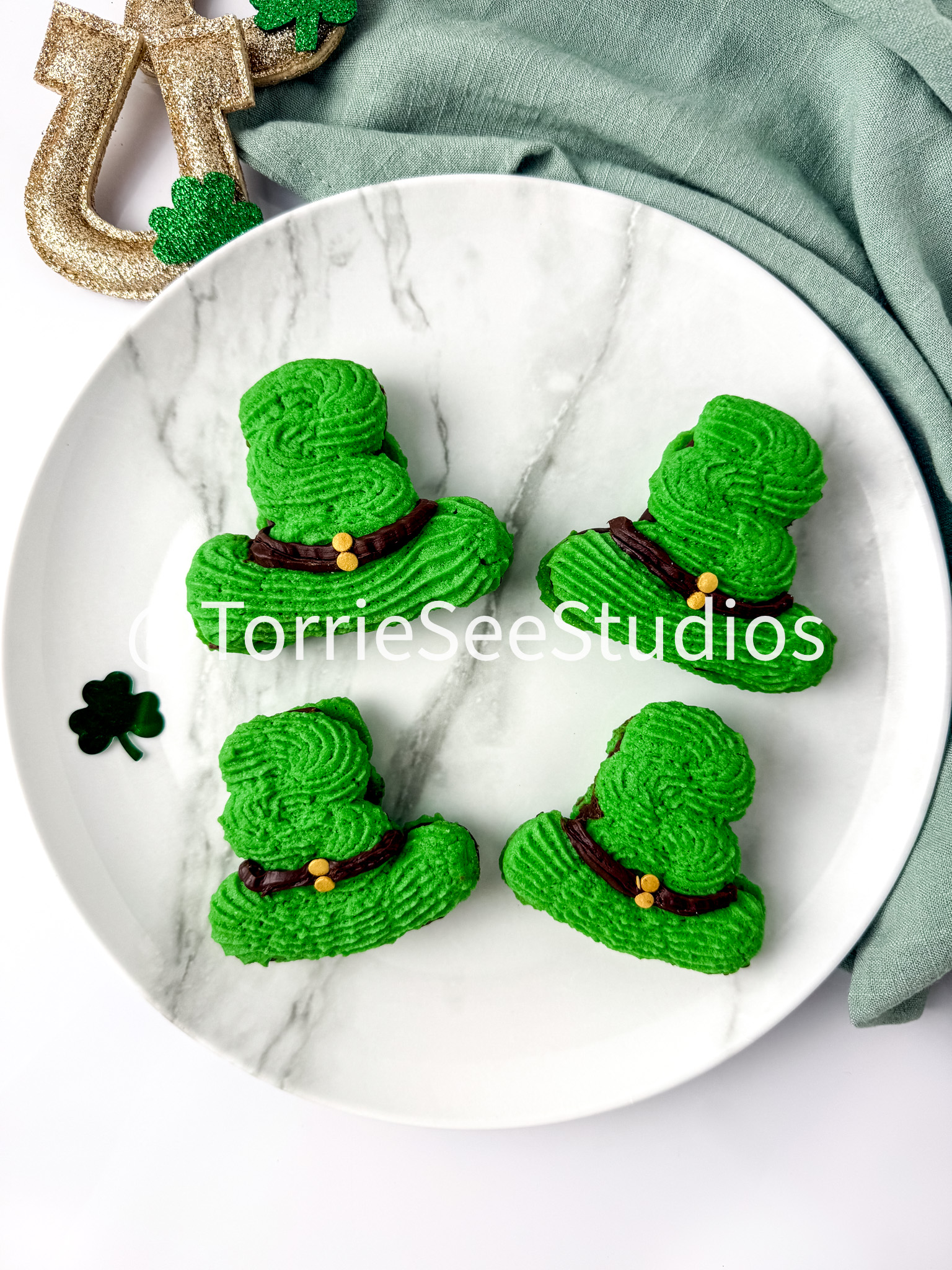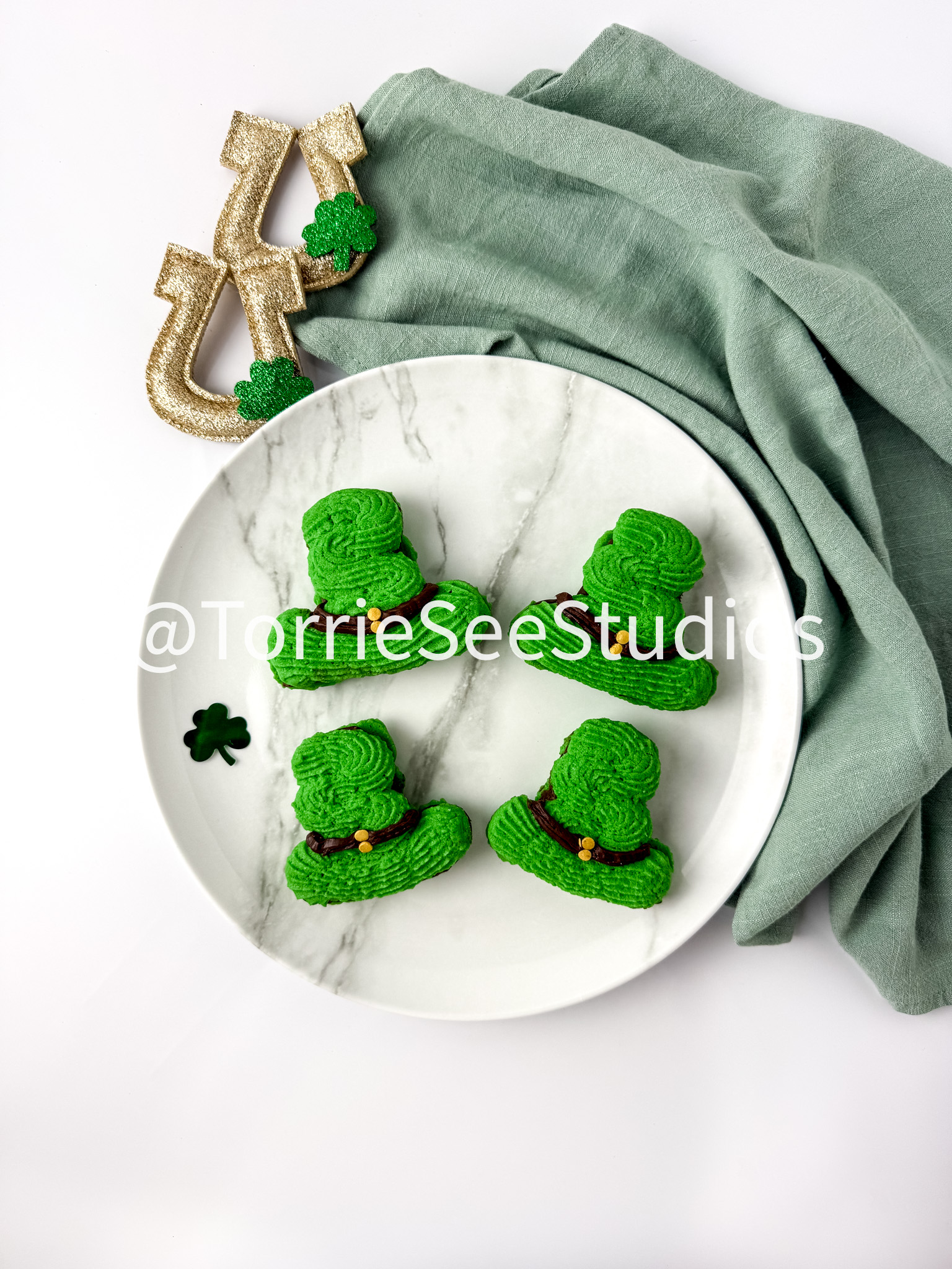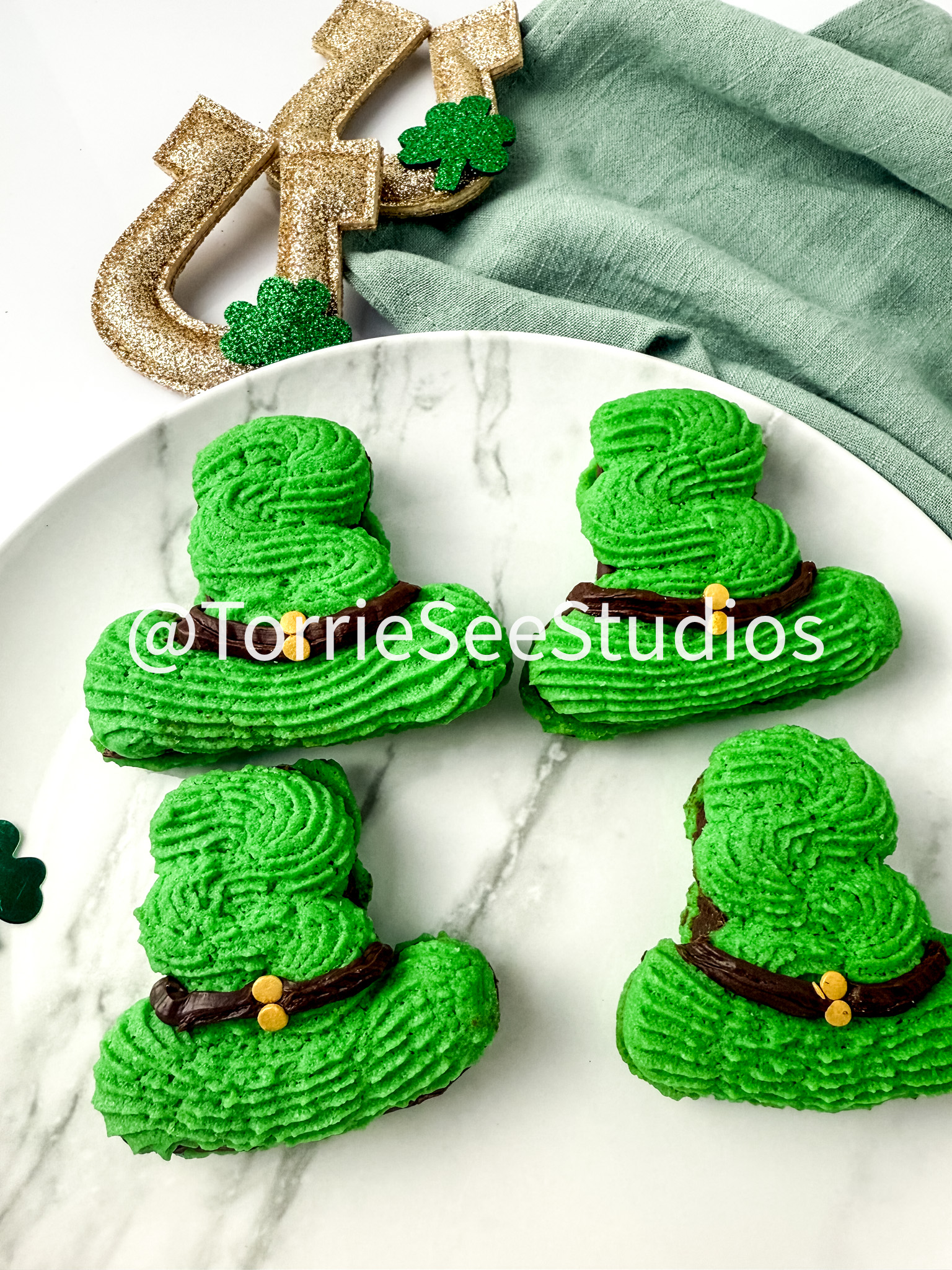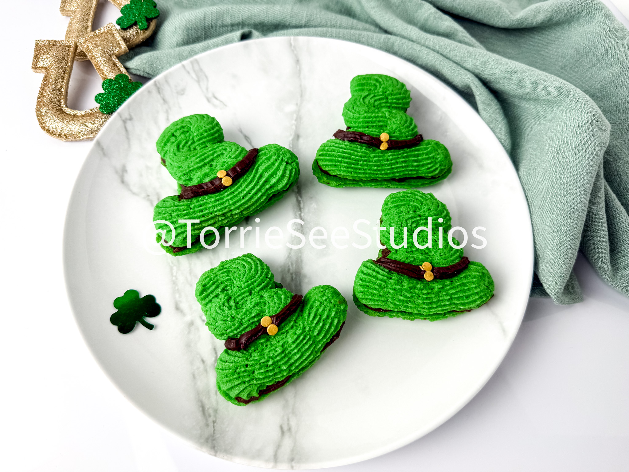 Irish Cream Leprechaun Cookie Sandwiches on White