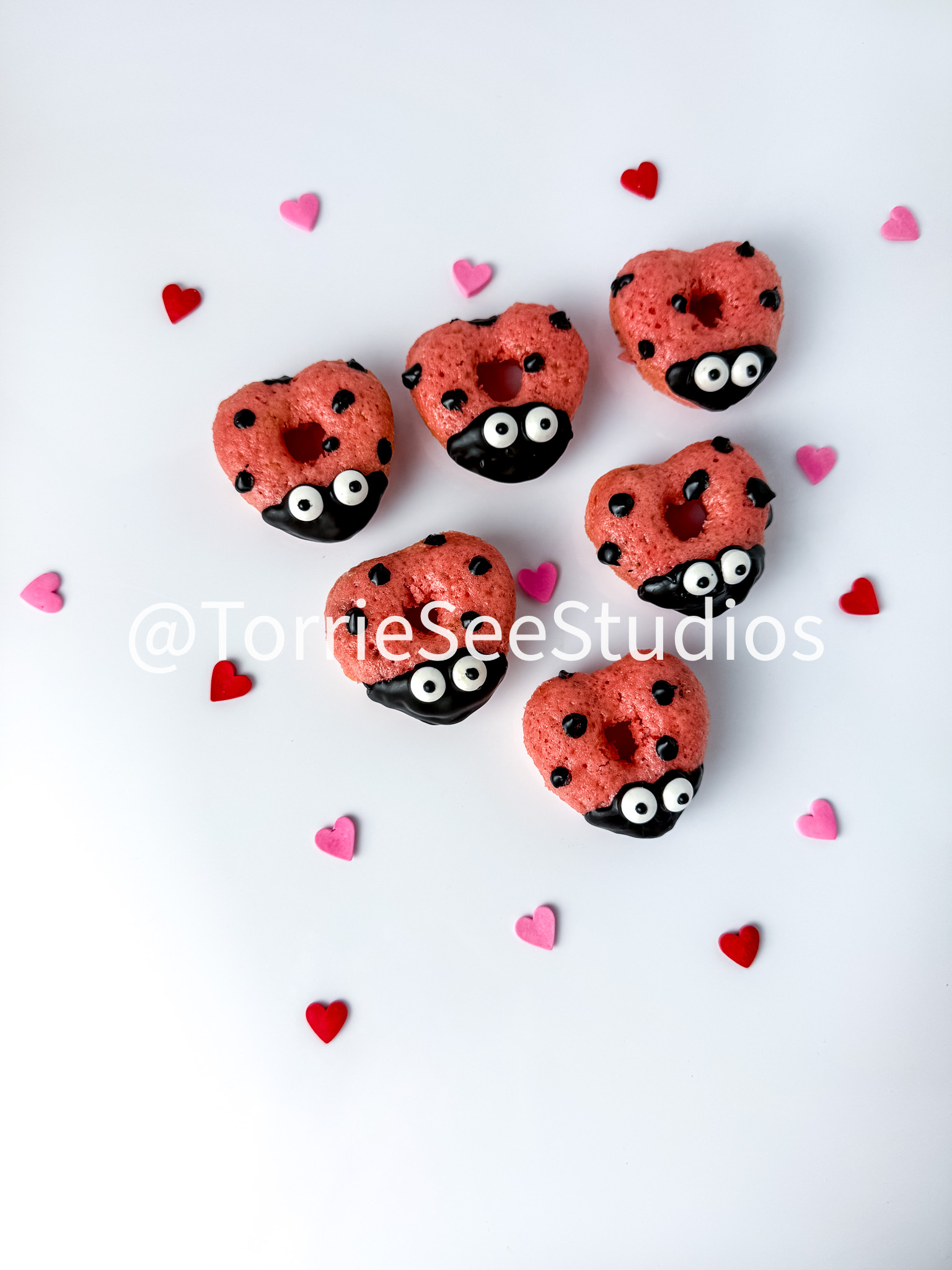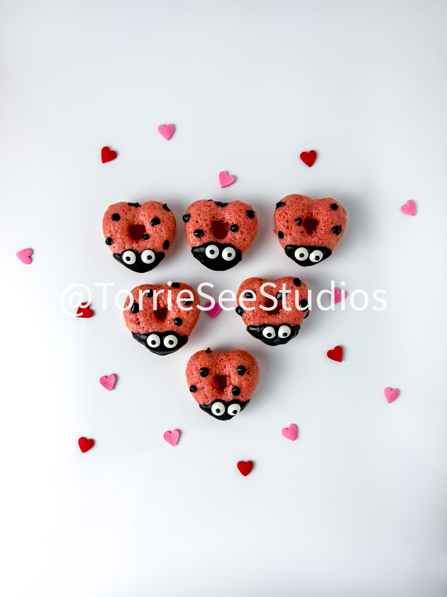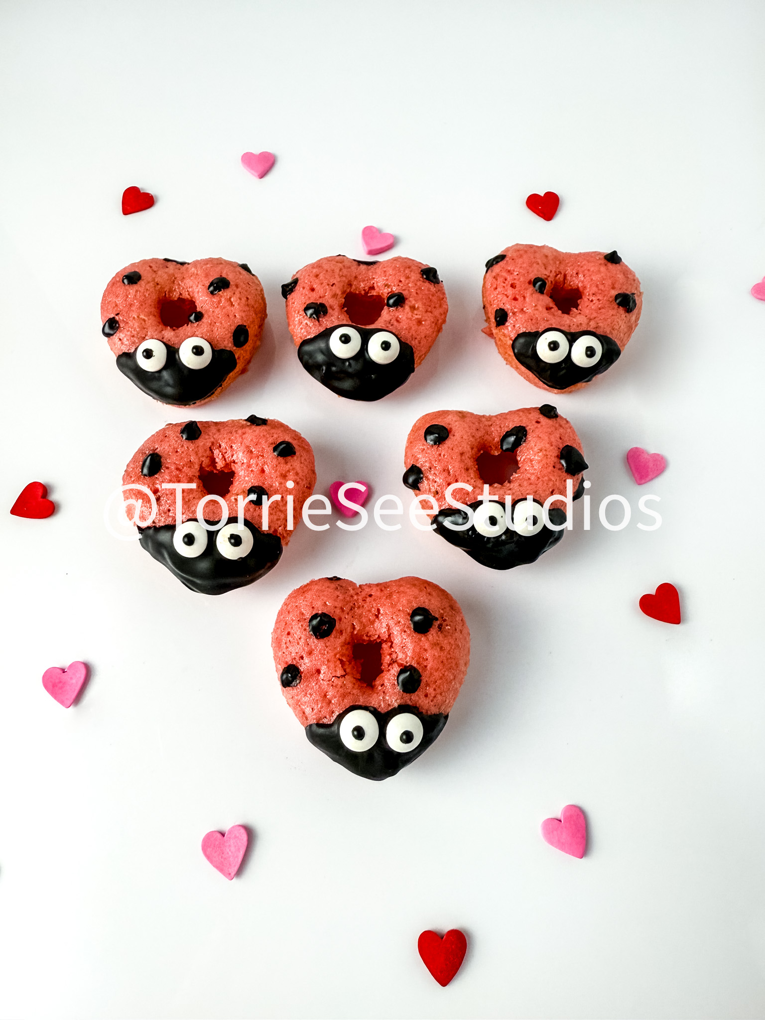 These Ladybug Heart Cake Donuts are a fun and bright snack. They are easy to make because the main ingredient is cake mix and the flavor is even better because we add in some extras. The heart shape adds to the charm making them great for Valentines day,  Mothers day or any springtime celebration