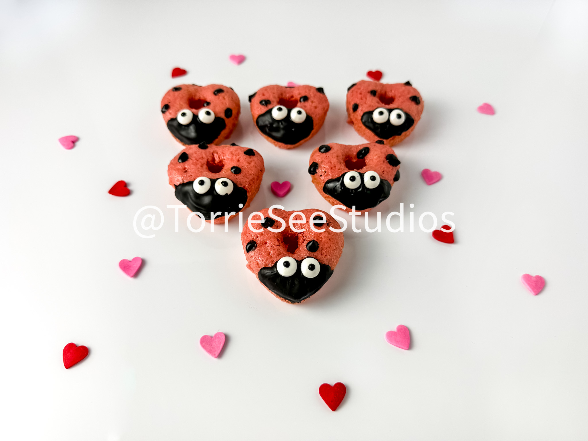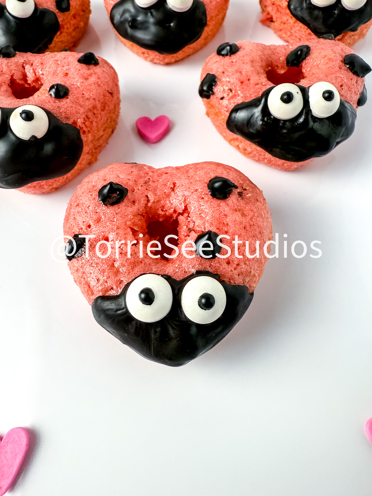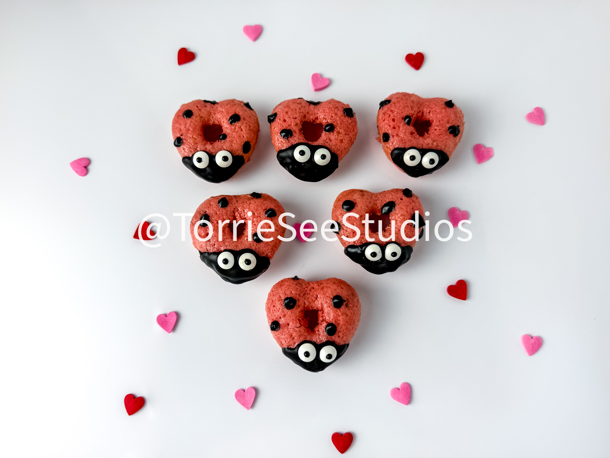 These Ladybug Heart Cake Donuts are a fun and bright snack. They are easy to make because the main ingredient is cake mix and the flavor is even better because we add in some extras. The heart shape adds to the charm making them great for Valentines day,  Mothers day or any springtime celebration