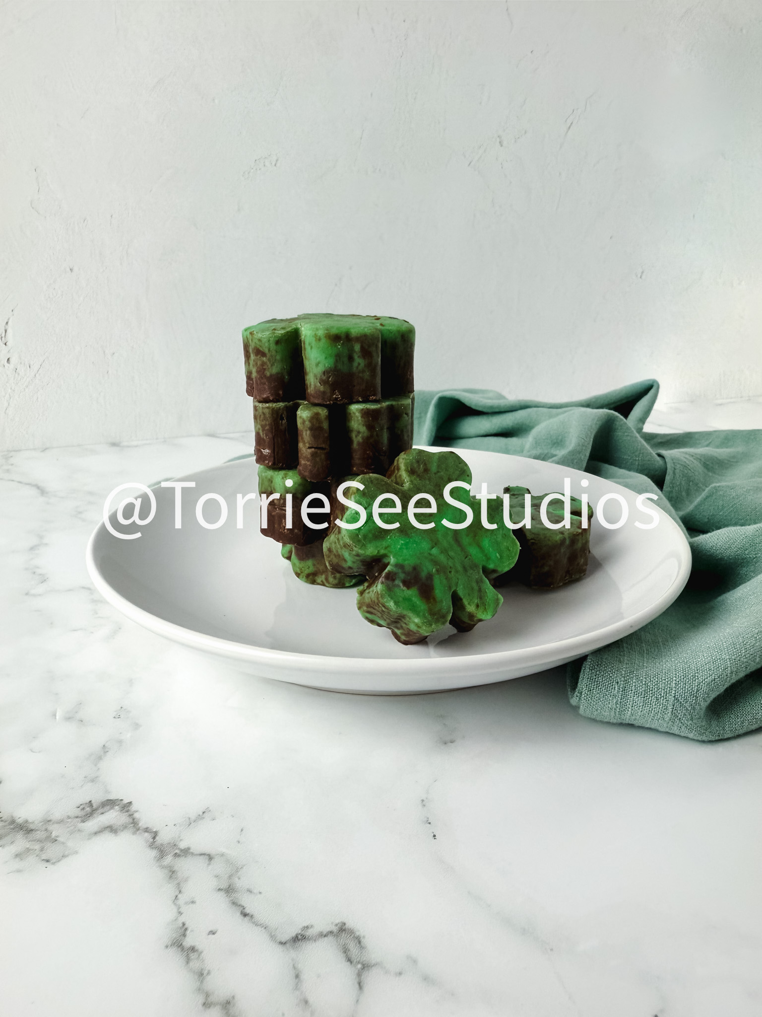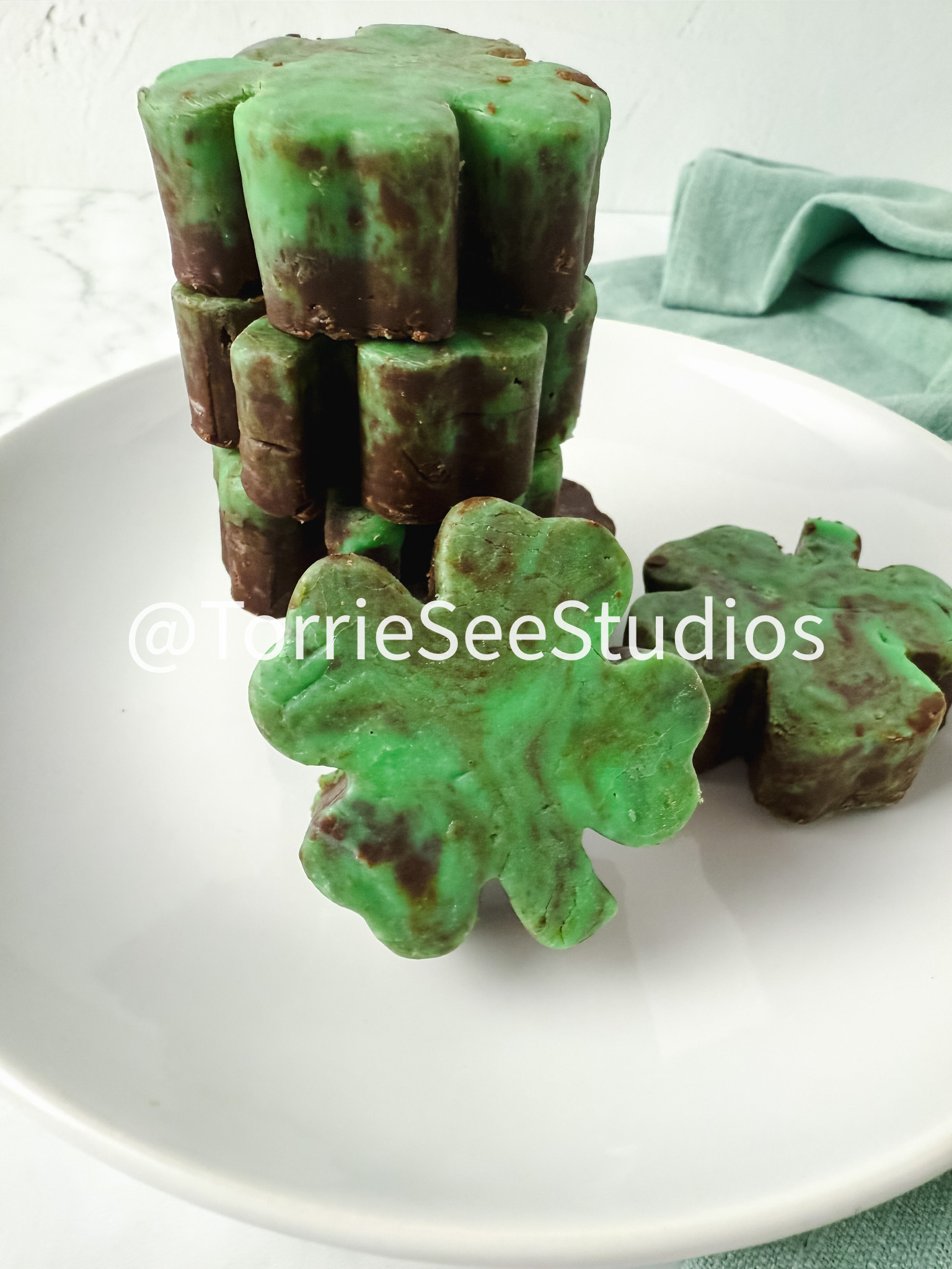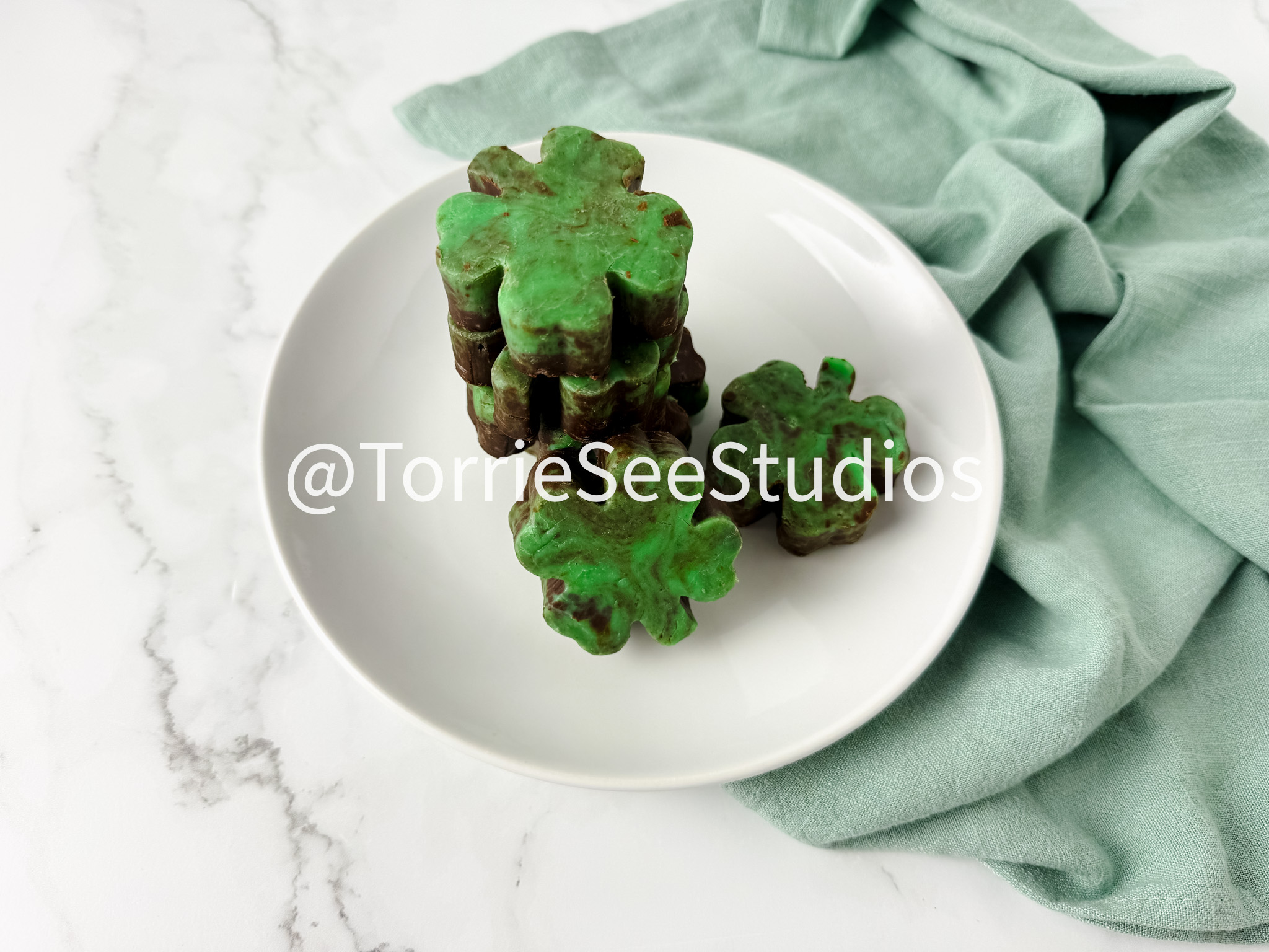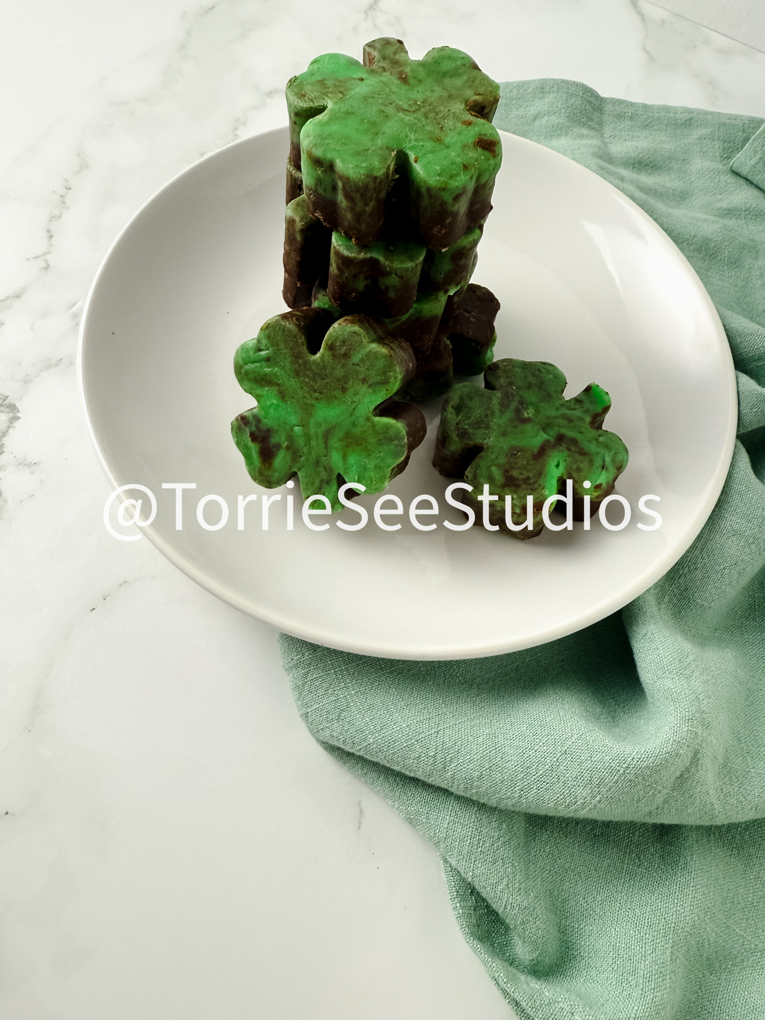 Mint Chocolate Shamrock Fudge on Marble