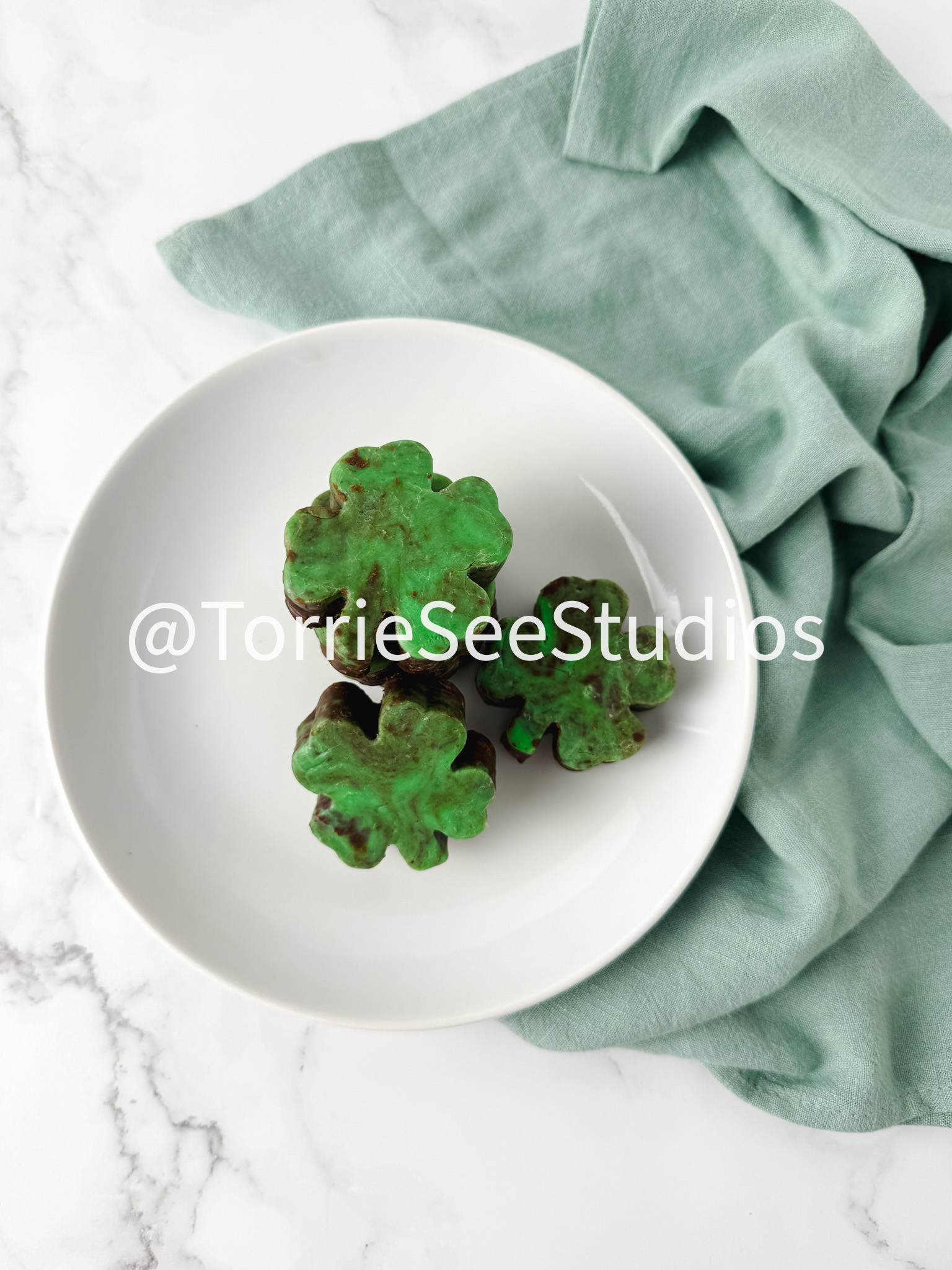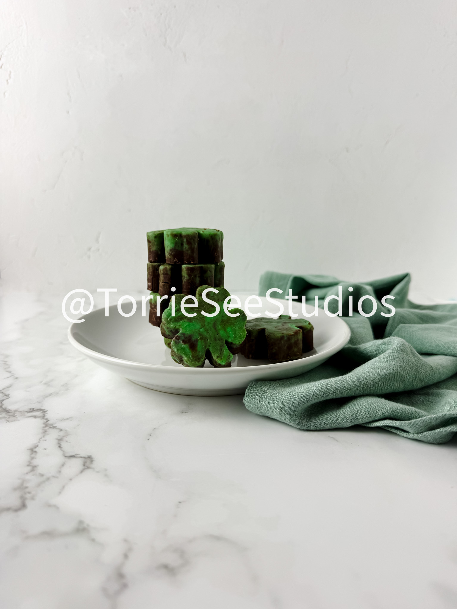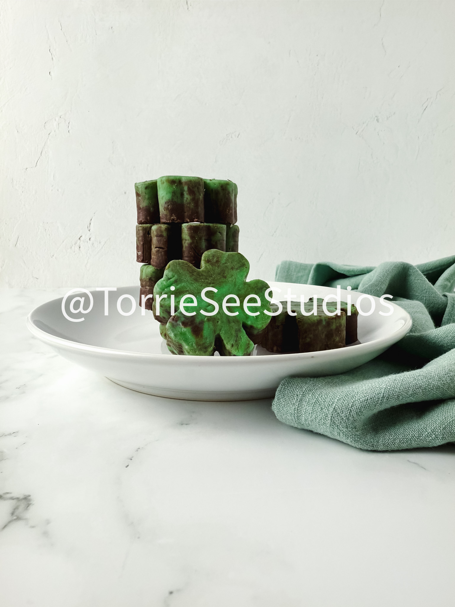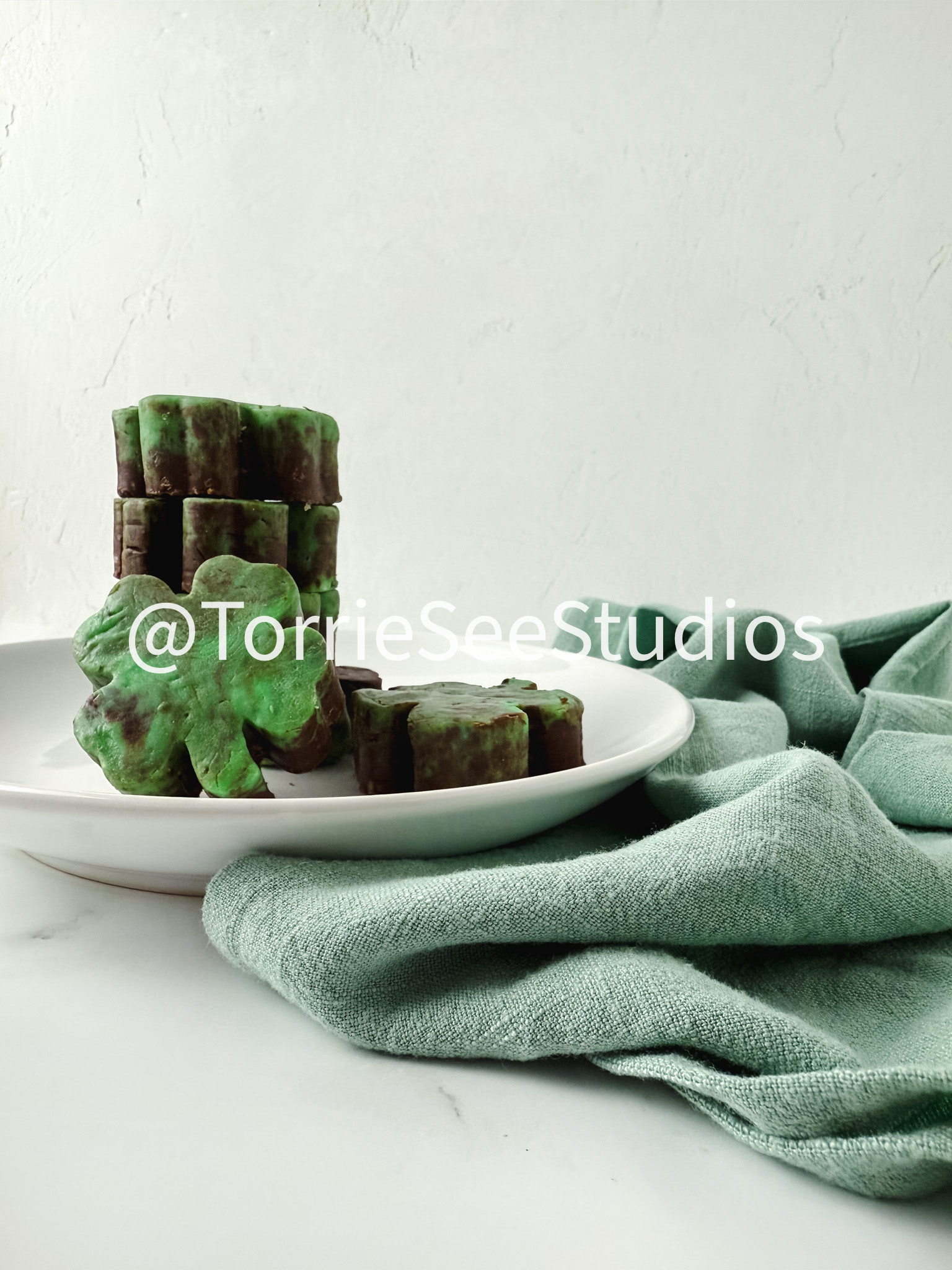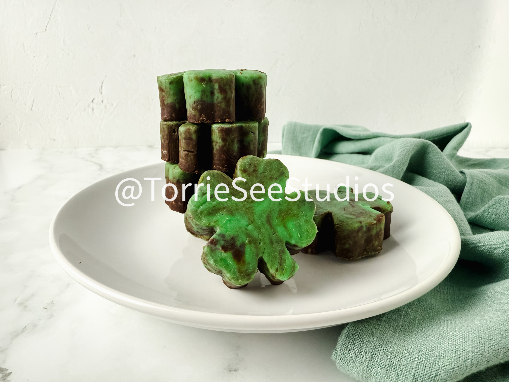 Mint Chocolate Shamrock Fudge on Marble