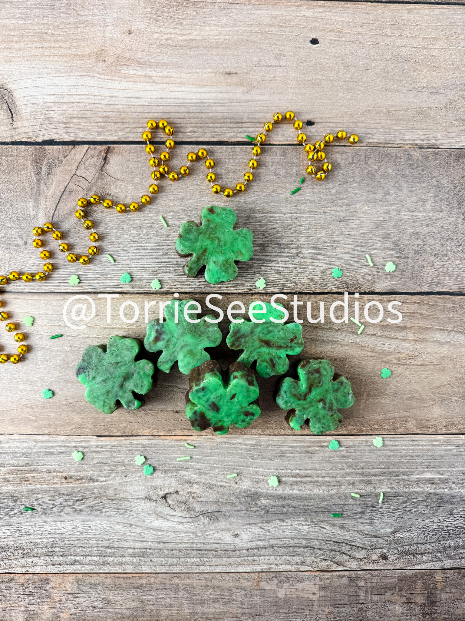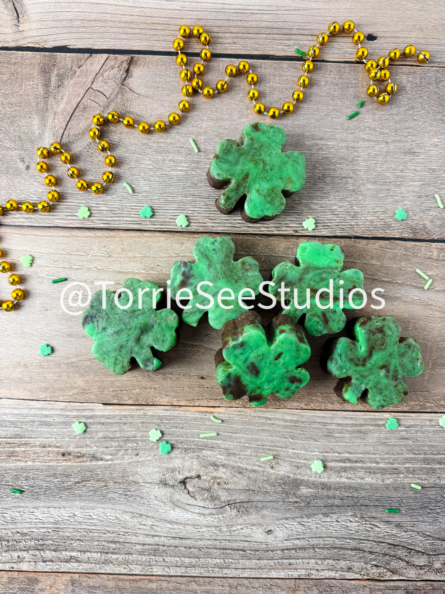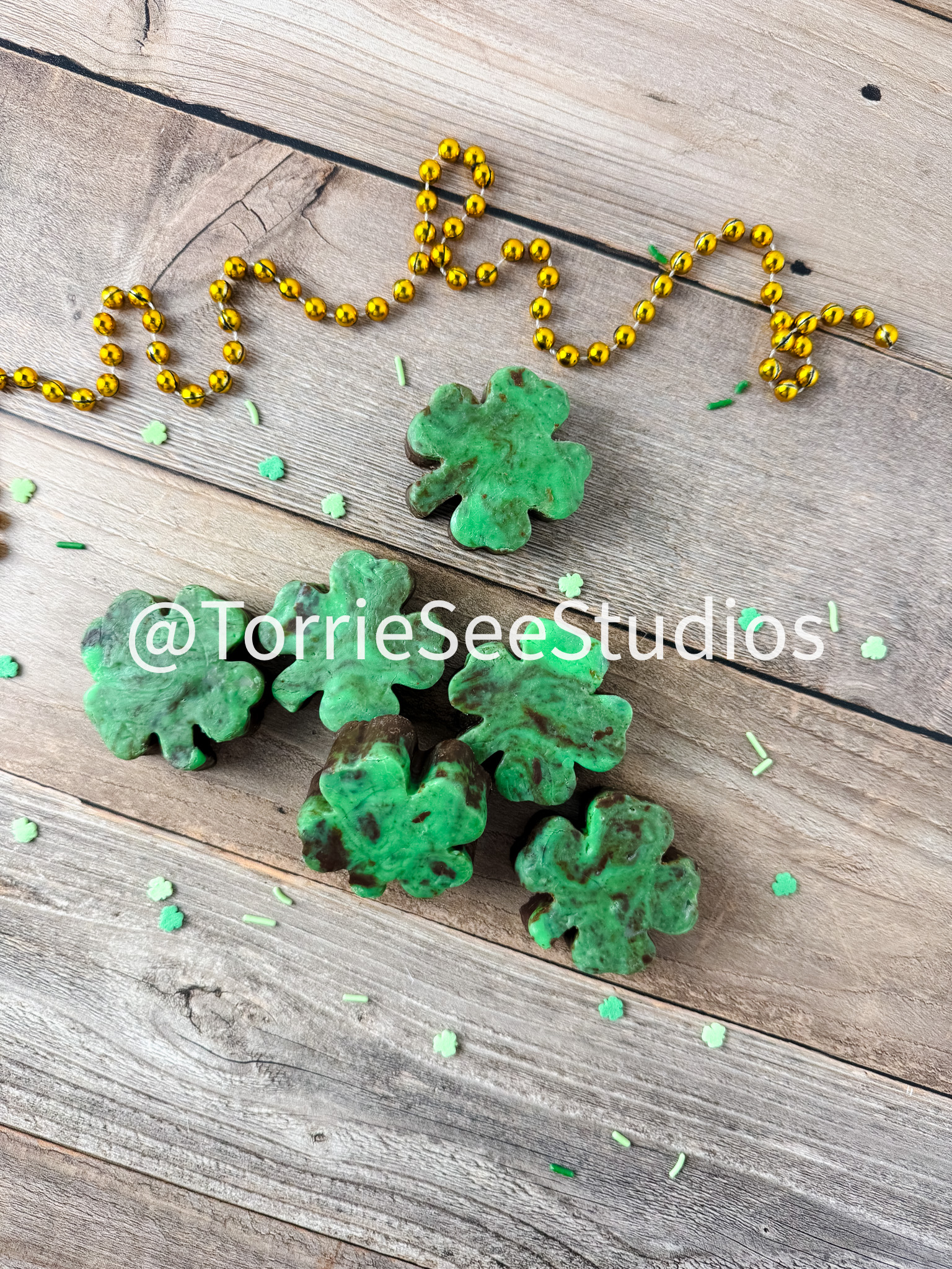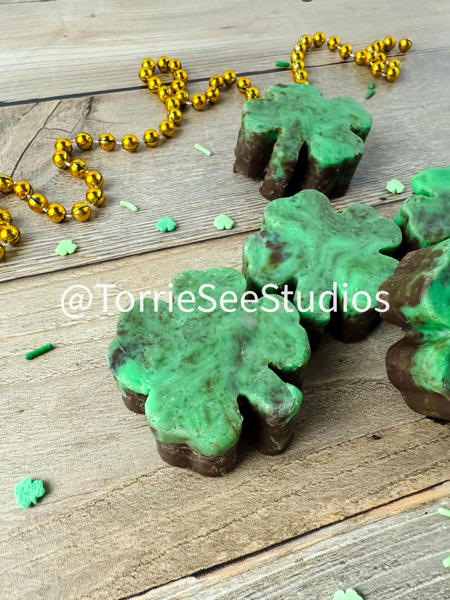 Mint Chocolate Shamrock Fudge on Wood